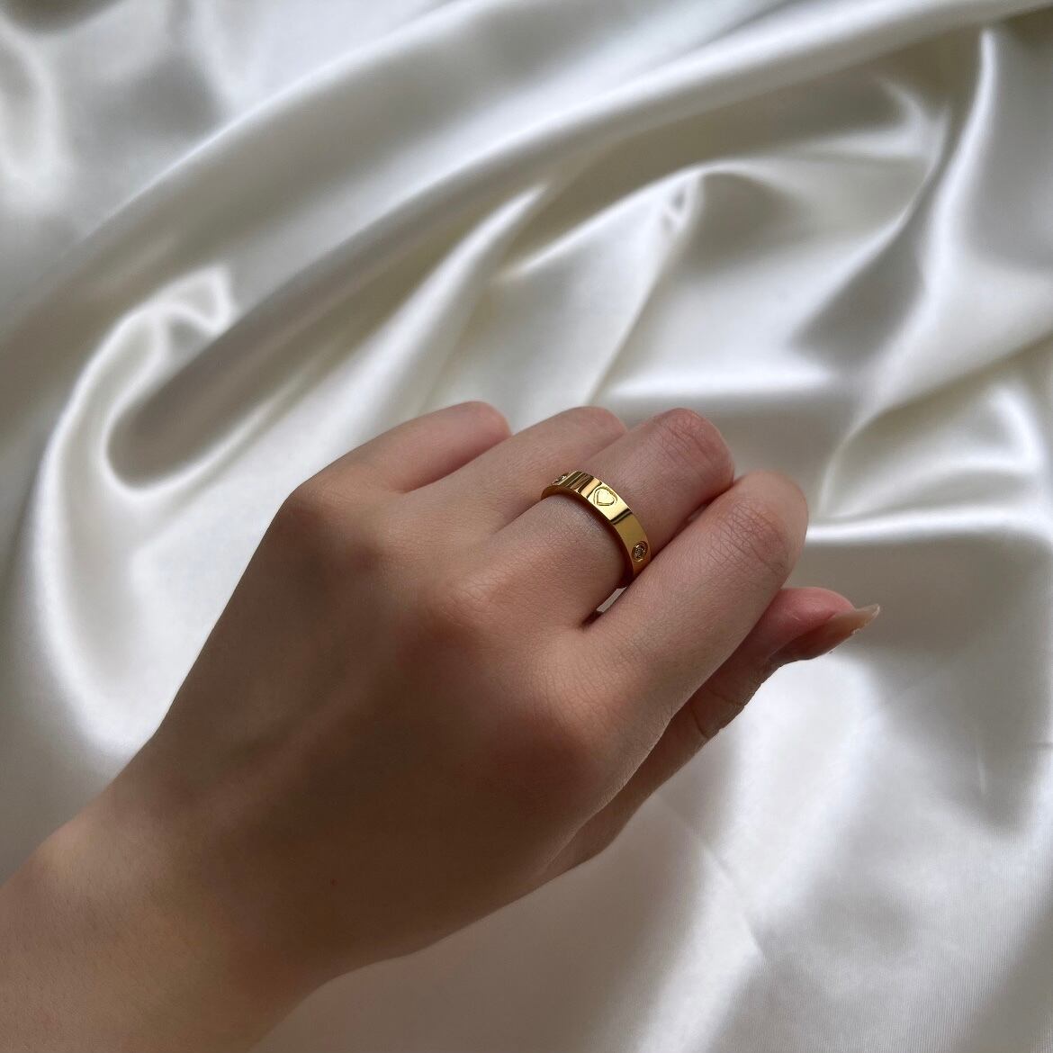 さりげないハートの刻印と、きらりとストーンが輝くリングです♡